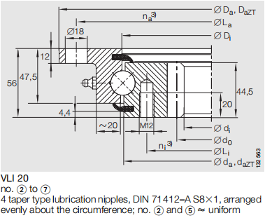 在性能表现上,精密转盘轴承兼具高承载与低振动特性:采用高强度轴承钢(如 GCr15SiMn)经特殊热处理,可承受一定轴向、径向载荷及倾覆力矩,同时通过优化滚动体排布与装配工艺,将运行噪音控制在 55 分贝以下,满足精密设备对低干扰的需求。此外,其寿命设计更注重 “精度保持性”,在额定工况下,精度衰减率较普通轴承降低 30% 以上,大幅延长设备维护周期。
