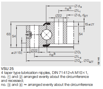 在性能表现上,精密转盘轴承兼具高承载与低振动特性:采用高强度轴承钢(如 GCr15SiMn)经特殊热处理,可承受一定轴向、径向载荷及倾覆力矩,同时通过优化滚动体排布与装配工艺,将运行噪音控制在 55 分贝以下,满足精密设备对低干扰的需求。此外,其寿命设计更注重 “精度保持性”,在额定工况下,精度衰减率较普通轴承降低 30% 以上,大幅延长设备维护周期。