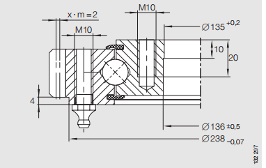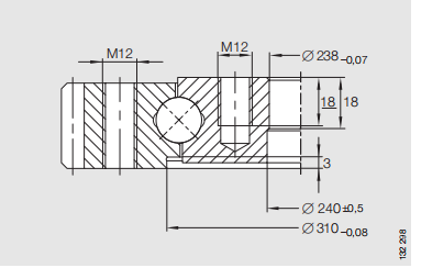 相较于普通重载型回转支承,精密转盘轴承的核心优势集中在精度控制与性能稳定性上。其径向跳动、轴向窜动误差通常控制在 0.005-0.02mm 范围内,滚道采用超精密磨削工艺,表面粗糙度可达 Ra0.2μm 以下;结构设计上优化了预紧调节机制,通过精准控制滚动体与滚道的接触压力,有效消除游隙,提升轴承刚度,同时标配高精度密封与长效润滑结构,避免杂质侵入与润滑失效,保障长期运行精度。