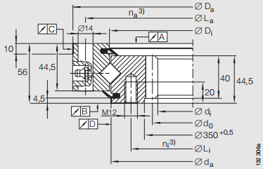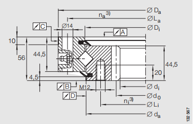在性能表现上,精密转盘轴承兼具高承载与低振动特性:采用高强度轴承钢(如 GCr15SiMn)经特殊热处理,可承受一定轴向、径向载荷及倾覆力矩,同时通过优化滚动体排布与装配工艺,将运行噪音控制在 55 分贝以下,满足精密设备对低干扰的需求。此外,其寿命设计更注重 “精度保持性”,在额定工况下,精度衰减率较普通轴承降低 30% 以上,大幅延长设备维护周期。