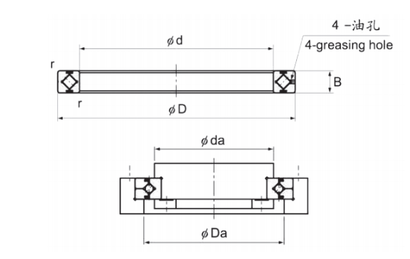 RB4010轴承的外形尺寸为内径45mm、外径70mm、高度10mm,内圈和外圈均可为整体结构,此系列自带安装孔适合应用于要求重量轻、结构紧凑的旋转部位,例如协作机器人,服务机器人、特种机器人和对位平台等。